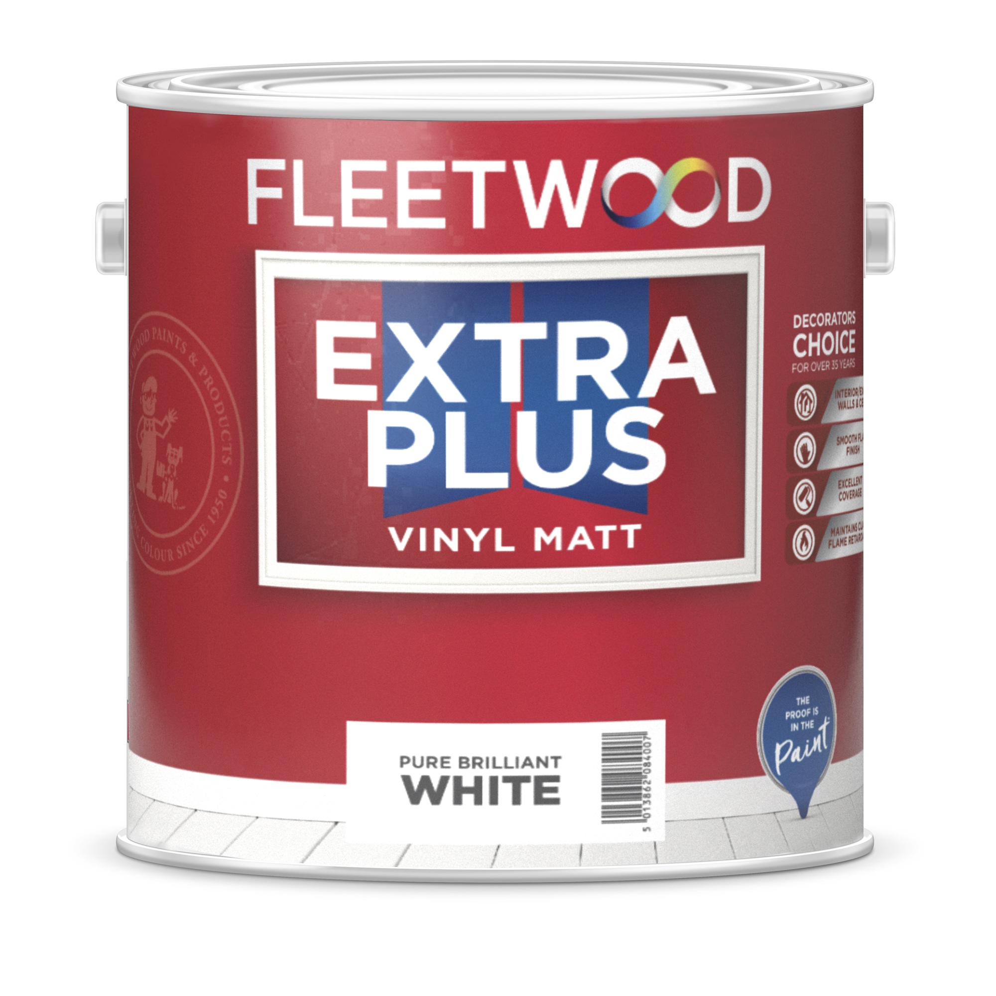 Fleetwood Extra Plus Vinyl Matt goes on quickly and evenly, drying to a flat, non-reflective finish that helps to hide surface imperfections such as lumps and bumps. Its advanced formulation ensures strong opacity and a uniform appearance, making it ideal for both new and previously painted surfaces.