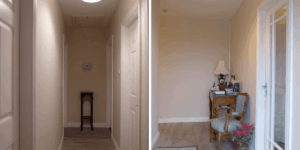 Hallways might look straightforward, but they’re not a standard matt-paint situation. Scuffs, fingerprints and knocks are part of daily life, especially in family homes or high-traffic spaces.
